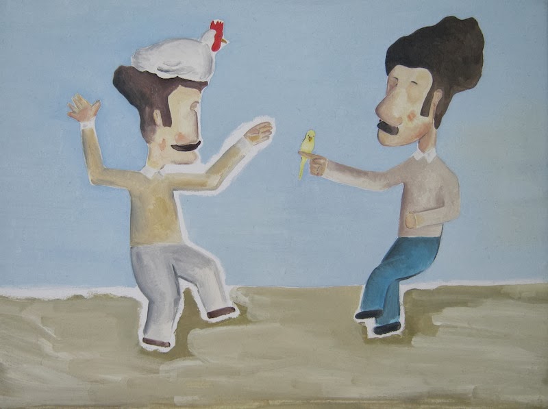 He is a polyglot, musician and artist like few others. No academy and no particular title a part from a degree in foreign languages and literatures. Only an unmistakable style. Self-taught in the middle between a romantic esthete and a cursed poet. A slight personality as his works. Kind pictures. Delicate scenes of a man and a hen. Domenico Lapolla said while drawing a curious mind that is able to capture moments of a bluish poetry unsettling. Perhaps self-portraits and narratives of a figure out of context with a single interlocutor: a hen. A bird that does not fly. From the beginning, the artist from Brindisi has always told about men and birds that decorate scenes with expressions without time and why. Just curious illustrations animated of a man with a mustache and his hair in the wind. Domenico Lapolla has a violin on his head. A pencil in his hand and the world in this heart.
